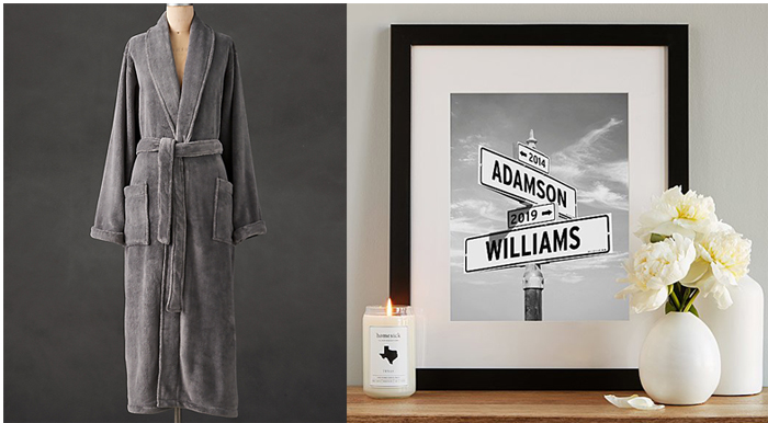 Left: Plush Long Robe (in 4 color choices)– Cozy. Made of 100% machine washable poly-plush. Generous self-tie wrap belt and rolled neck and cuffs. Full length. Robe may be personalized; placement will be on the left chest Add a 1-initial or 3-initial monogram with choice of font color and style; choose tone-on-tone color option to match satin stitching. $59.00-$79.00