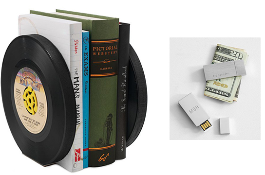 Right: USB Money Clip– Nifty gift for the man who travels. Hides up to 1,750 songs (10,000 photos or up to 10 hours of video) 2″W x 3/4″H.Brushed stainless steel clip features an 8GB USB flash drive and personalization of your choice. Choose between a shiny stainless steel finish or a brushed polished stainless steel $64.99-$85.00