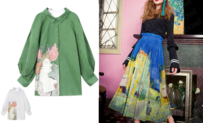 Left: Impressionist Portrait of A Woman Skirt– Distinctive color. A-line, knee length. $118.00