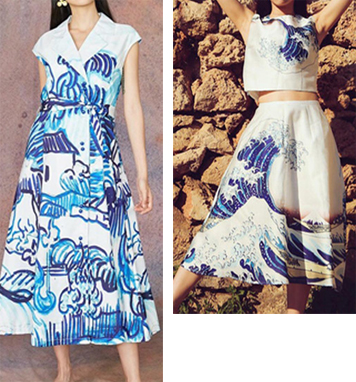 Right: The Great Wave of Kanagawa– Hokusai Dress- Sample size sale. On trend silhouette. Original design. Satin/polyester/silk (MUST NOT wash with dark color clothes. MUST NOT use high temperature iron or steam) $29.00