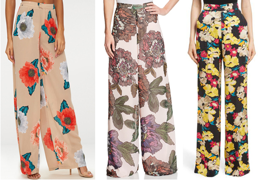 Left: Alpha Floral Super Flare Trousers by Top Shop– Retro chic, high rise, narrow to wide pants. Machine washable polyester. $100.00