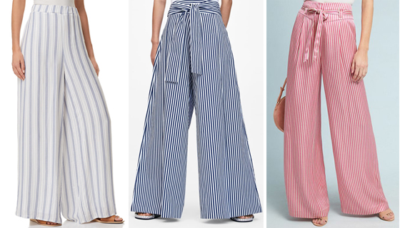 Center: Striped Palazzos– Cotton crisp and traditional, high waist ,wide-leg trousers with a tied belt around the waist. Front pleats, side in-seam pockets and side zipper fastening hidden in the seam. $49.90