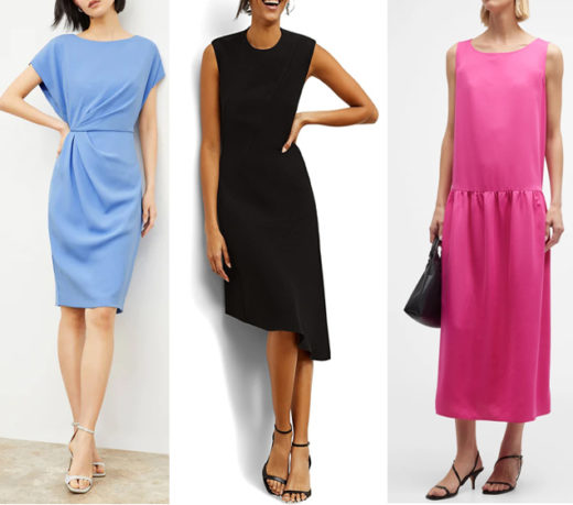 The Jillian Dress by MM La Fleur: Features a relaxed bodice, a cinched waist, extended cap sleeves, and asymmetrical gathering machine washable, wrinkle resistant 82% Triacetate, 18% Recycled Polyester 6 colors $365.00