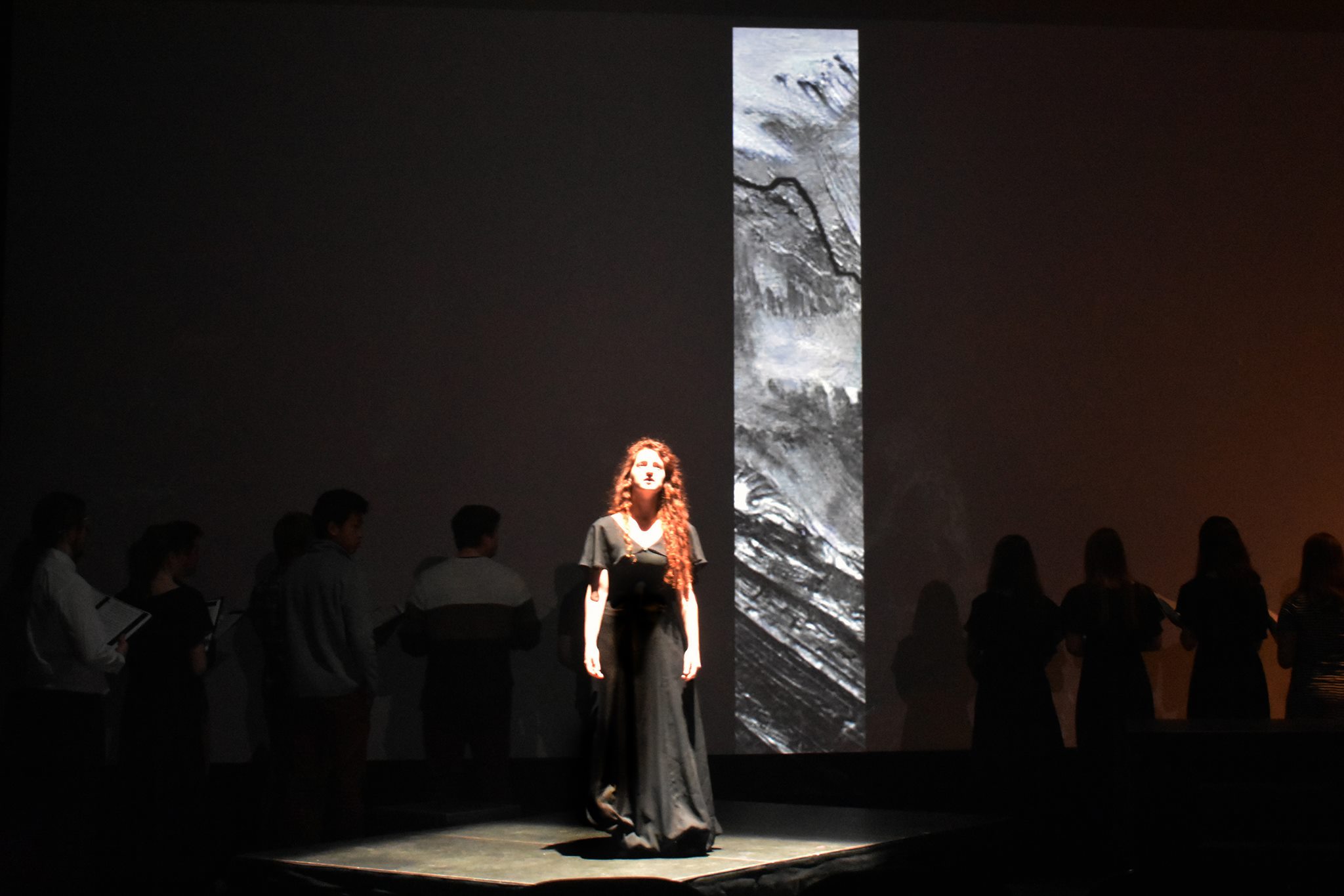 Top: Camilla Tassi, performer and projection designer in Carissimi’s “Jephte” re-imagined. Hopkins Center for the Arts, Hanover, NH. Photo by Jozh Davis