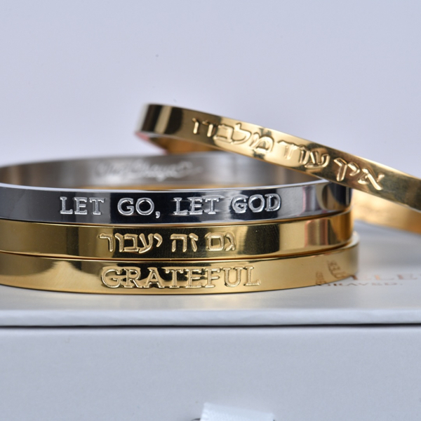 What began as a deeply personal practice has grown into a movement touching thousands of lives. Today, The Honest Jeweler is known for its engraved spinner rings and affirmation bangles, each designed to serve as more than jewelry. They are tactile reminders to breathe, return to the present, and carry courage, strength, and hope. Engraved with messages such as “Ein Od Milvado,” “You Are Worthy,” and “Stay Present / Live This Moment,” each piece is crafted to make the invisible — love, faith, resilience — visible again.