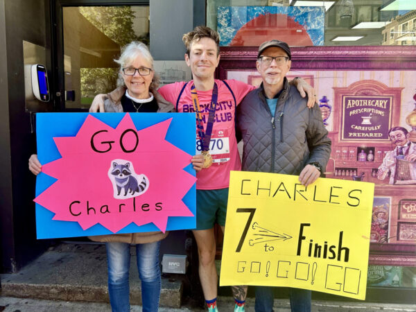 The marathon was special for us because our son, Charles, was running. My husband, Chuck and I spent Saturday night brainstorming ideas for our signs and making them to wave as he ran by our position on First Avenue. But even before Charles passed our viewing point, countless people approached us to chat about the race, sharing the fact that they also had a family member or friend in the marathon and showing off their handmade signs. Smiles and good luck wishes were exchanged over and over again. The positive vibes set the pace for viewers like us and many more.