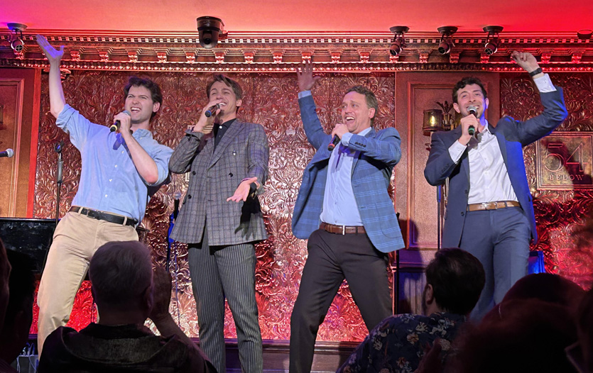 Tonight’s finale, “The Rink,” is buoyantly enacted by its talented ensemble, Danny Gardner, Bruce Landry, Andrew Leggieri, and Quinn Corcoran. Each is nonplussed by his girl preferring the rink rather than carefully planned entertainment. There’s brotherhood in being in the same boat. Vocals are consistently good. Top notch direction on the small stage even has the men awkwardly skating.
