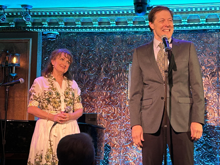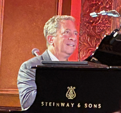 Producer Richard Frankel, former co-owner now managing director of non-profit 54/Below, tells us about The Rink’s director, A.J. Antoon – his background, success, and untimely passing from AIDS. Frankel appeals to the audience to sponsor chairs, possibly in honor of people who’ve passed, as contribution to keeping live music afloat at our preeminent venue. He shows a plaque on the chair he endowed.