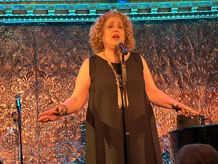 “Colored Lights” casts Mary Testa as Angel. Testa went on for Minnelli in the show’s last two weeks. “She had the good sense to know she was in trouble….” (Minnelli checked in at rehab.) The song is filled with palpable longing. Vocal flares and retreats, flares and retreats. Caroline O’Connor, who played Anna in London, reprises the role for a feisty “Chief Cook and Bottle Washer.” Facial expression, gesture, expressive vocal are wonderful.