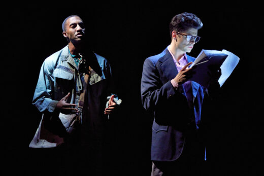 Ron Canada’s Cyrus is grounded and real. We observe ego, intelligence, stubbornness, rue, affection, and resolution. The actor gives his character dignity. As Broston, Bryan Batt is more credible interacting with others than addressing the audience. Vulnerability and pride are well played. Marcia Cross is too expansive for Lana’s personality – a directorial issue? Steve Hauck (Jean Luc) is a caricature. Danielle J. Summons seems two beats behind, a tad too stuck in Gigi’s anger.