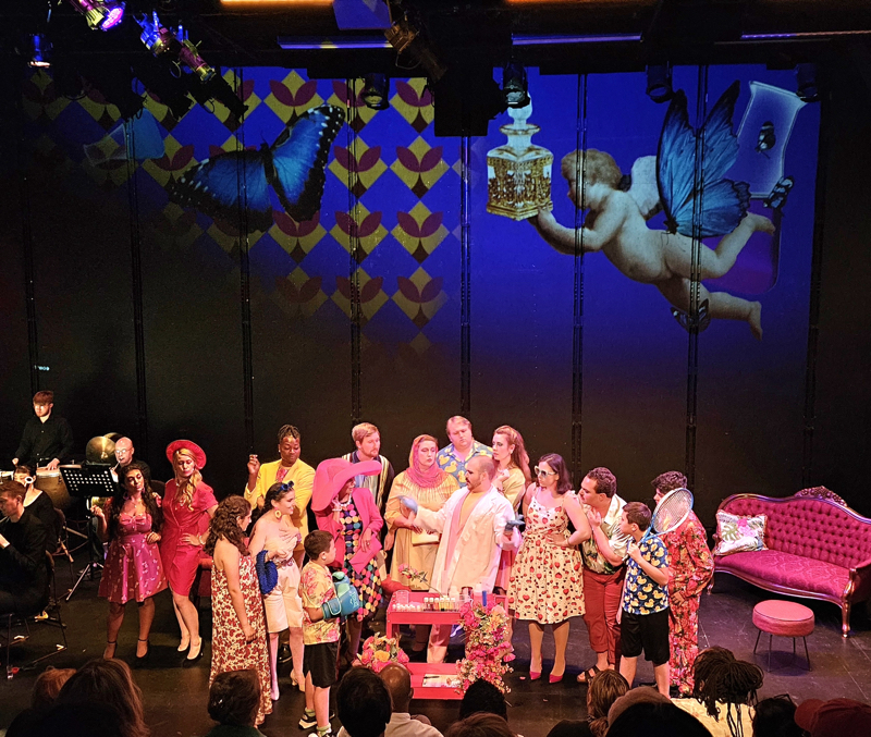 Anyone concerned about the future of opera should have seen Teatro Grataciello’s production of Donizetti’s L’elisir d’amore on June 1st at the Flea Theater. Co-produced with Camerata Bardi Vocal Academy, this production is part of Teatro Grataciello’s Young Artists Series, an initiative that not only offers the opportunity to young singers to perform in professional settings, but also regales audiences with the joy of discovering of new voices. And that discovery extends to the work of even younger creative talents, such as students from The High School of Fashion Industries in New York City who assisted with the designs. It was impossible to resist feeling exuberant in the atmosphere around this production, fully infused with freshness and the promise that the future of opera is indeed bright.