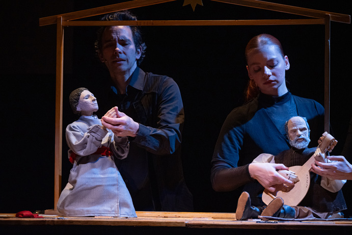 Tom Lee with Porfiry Martynovych puppet and Zlata Godunova with Ostap Veresai puppet (Photo by Pavlo Terekhov)