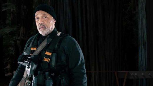 Suddenly, (uninvited) neighbor Bernard appears dressed in full commando regalia. Gossip has it he used to be CIA. Dangling a carcass, Bernard offers to share his kill (yech), then asks whether the couple is keeping up with current events. “Sources reveal multiple flashpoints worldwide. Zero hour is approaching. Situational awareness is key,” he warns ominously. Nick handles him well.
