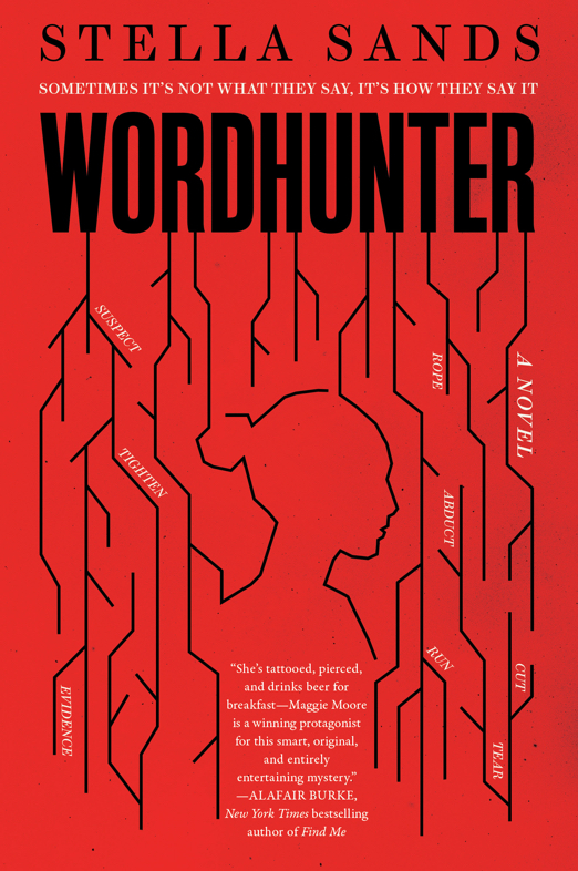 Maggie Moore, the tattooed, pierced, motorcycle-riding genius in Stella Sands’ mystery, Wordhunter, is an expert in linguistics. Studying the words, phrases, and slang people use, whether they are speaking or writing, gives her the information she needs to create a profile. In her spare time, she diagrams sentences, and not just simple five word ones, but long ones from Hemingway, Twain, Atwood, Proust, and even Bob Dylan. (Sands sprinkles these sentence diagrams throughout the pages and they are something to behold.)