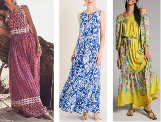 After a day at play in shorts or a bathing suit, a dress does wonders for morale. Herein some loose, casual samples.