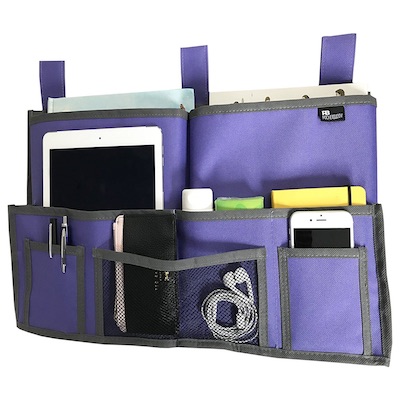 Hanging Organizer Bedside Caddy provides the perfect way to keep everything close by, even a laptop. Especially good when there is no room for a bedside table. $12.99