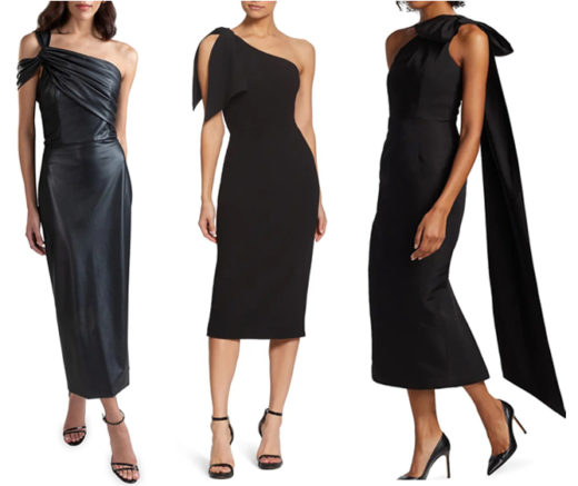 Tiffany One-Shoulder Midi Dress by Dress the Population: Figure-hugging silhouette with two panels that cascade over the single shoulder. Machine washable, lined polyester. Hidden zipper. $148.00
